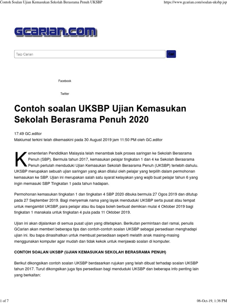 Facebook Contoh Soalan Uksbp Ujian Kemasukan Sekolah Berasrama Penuh Pdf